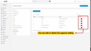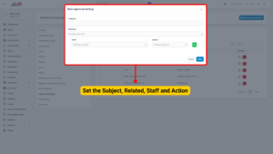 The Approval Settings feature allows administrators to configure and manage approval workflows for various types of inventory transactions. This ensures that all key inventory activities are reviewed, approved, and signed off by authorized personnel before being finalized.