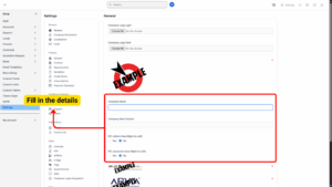 Within the General Settings page, you will find several fields where you can provide important company information and visual assets. Completing these fields helps personalize the system for both administrators and clients.