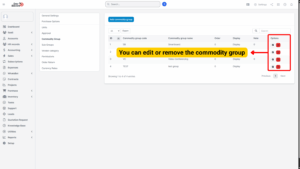 Step 3: From this page, you can add, edit, or delete commodity groups as needed.
