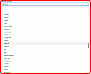 – Select the main country where your business operates.