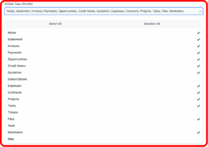 – You can decide which tabs appear for customers in the accounts area.