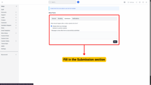 The Submission section controls what happens after a user submits the form.