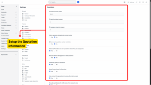 On the Quotation settings page, you will find several options that control the numbering format, visibility, and automation behavior for quotations.