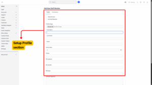 The Profile section contains essential details about the new staff member. Fill in all required and relevant fields carefully.