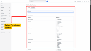 The Permissions section allows you to define the staff member’s role and control their access within the system.