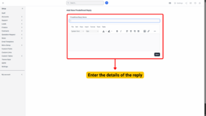 Predefined Reply Name* | Enter a descriptive name for the reply (e.g., Welcome Message, Ticket Acknowledgment, Troubleshooting Guide). (Required) |