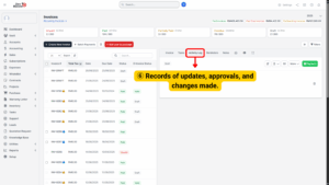 c) Activity Log – Provides a history of all actions taken on the invoice, including approvals, updates, edits, or any communication linked to it. This is useful for tracking accountability and changes over time.