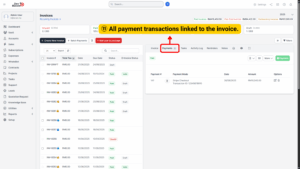 f) Payments – Shows all payments linked to the invoice, including payment method, date, and amount. This ensures that you can monitor whether an invoice is fully settled, partially paid, or still pending.