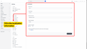 After configuring your company information, the next step is to set up Localization in Bizcore. Localization ensures that your system uses the correct language, time format, and regional preferences, creating a seamless experience for both administrators and clients. Proper localization is essential if you serve clients in different regions or if your team operates across multiple time zones.