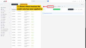 a) Invoices Credited – Displays a list of invoices that the credit note has been applied against. This is particularly useful when a single credit note is used to adjust multiple invoices.