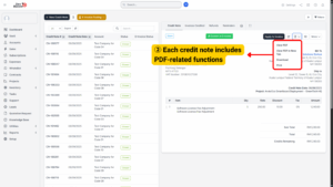 The system provides several tools for reviewing, applying, and managing credit notes so that organizations can handle corrections, refunds, and adjustments efficiently.