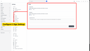 Once you have configured the E-Sign settings, click Save Settings to apply the changes. Test by sending a quotation or opportunity to confirm that the digital signature and legal text display correctly.