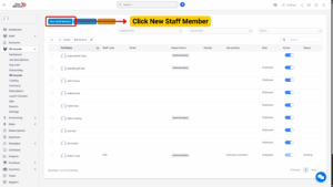 The Staff Member section allows HR administrators to add, view, modify, and remove employee records. It ensures that each employee’s data is securely stored and easily accessible for administrative and reporting purposes.