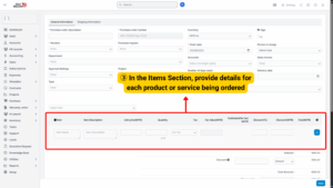In the Items section, specify the products or services being purchased: