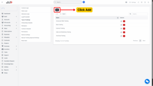 From the Type of Trainings screen, click the Add button.