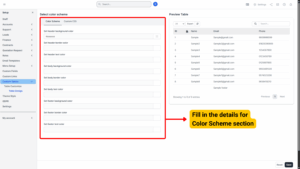 The Color Scheme section allows you to define colors for each part of your tables. All colors must be set using hexadecimal color codes (e.g., #FFFFFF