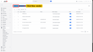– Click on the New Vendor button located at the top right of the Vendor list page.