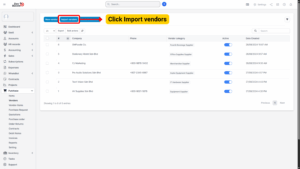 – If the import is successful, all vendors will be added to the system.
