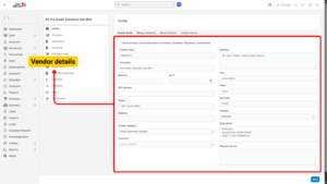 In this system, vendors can be created manually or imported in bulk. Each vendor can have its own unique details, including company information, billing and shipping addresses, return policies, preferred currency, and language preferences.
